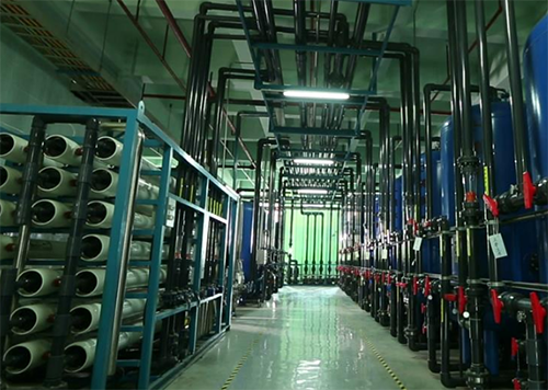 鋰電池行業用超純水包括蓄電池生產用超純水,鋰電池生產用超純水,太陽能電池生產用超純水,蓄電池格板用超純水。電池中電解液的配備對純水要求十分嚴格,通常要求水的電導率在0.1μs/cm(電阻率在10兆歐姆)以上,傳統用來制備電池用超純水的工藝是常采用陰陽樹脂交換設備,該工藝的缺點在于陰陽樹脂在使用一段時間以后要經常再生。隨著工業膜分離技術的不斷成熟,現在常采用反滲透膜法水處理工藝,或者是采用一級反滲透后面再經過離子交換混床(或電去離子EDI)工藝來制取超純水。本純水系統設計結合化工行業用純水的要求,制定適合在鋰電池行業使用的純水系統。