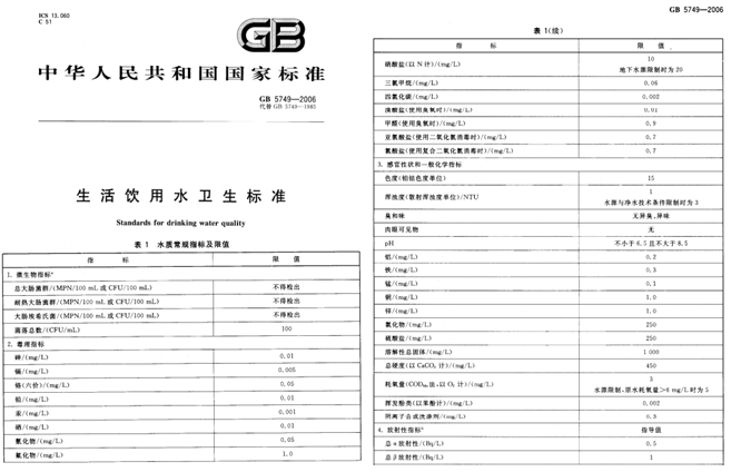 其中GB5749-2006《生活飲用水衛(wèi)生標準》對于居民生活飲用水的106項指標要求中就有砷和氟的要求,要求砷含量<0.01mg/L,氟含量<1.0mg/L,這樣做的目的就是為了防止砷和氟超標導致出現(xiàn)飲水型砷中毒和飲水型氟中毒。