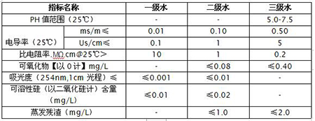 根據(jù)中國國家實驗室分析用水水質標準(GB/T6682-2008)中明確指出,實驗室用水中三級水PH值范圍(25℃)為5.0-7.5之間,而對于純度更高的一級水、二級水則沒有設定PH值標準范圍,原因是在一級水、二級水的高純度下,很難測定其真實的PH值,故此,未對一級水、二級水的PH值范圍做規(guī)定。