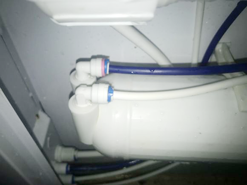 而廢水口和純水口都在一起,且接口大小一致,唯一的區別就是純水口比廢水口在垂直狀態下,廢水口位置比純水口略低一點,可以通過此方法來判斷實驗室超純水機RO膜的純水接口與廢水接口。