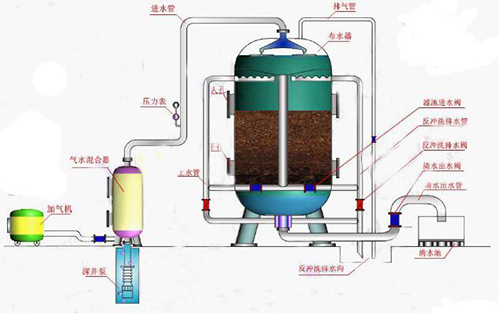 石英砂是屬于一種壓力式的過濾器,利用過濾器內所填充不同規格的精致石英砂濾料,當進水自上而下流經濾層時,水中的懸浮物及粘膠質顆粒被截留,從而使水的濁度降低。